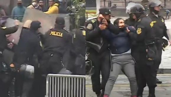 Imágenes difundidas por Canal N mostraron cuando un numero contingente de agentes de la Policía Nacional llegó hasta la Plaza Mayor de Lima para retirar a los protestantes que se encontraban parados y sentados portando pancartas. Ante la negativa de los manifestantes, se produjo un breve enfrentamiento con los policías y posteriormente fueron retirados a empujones y jaloneos.