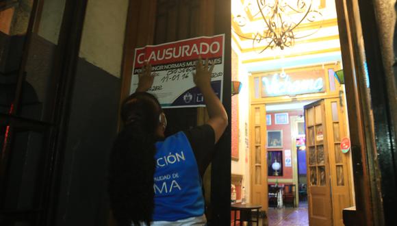 Esta madrugada, la Municipalidad de Lima realizó un operativo en el Centro Histórico y clausuró un bar que funcionaba sin respetar los protocolos de bioseguridad establecidos durante el estado de emergencia.