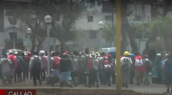 Un grupo de manifestantes que se dirigía esta tarde hacia el aeropuerto Jorge Chávez del Callao, fue echado por comerciantes del mercado Santa Rosa, quienes, junto a choferes y cobradores de micros, se enfrentaron a ellos en plena avenida Tomás Valle.