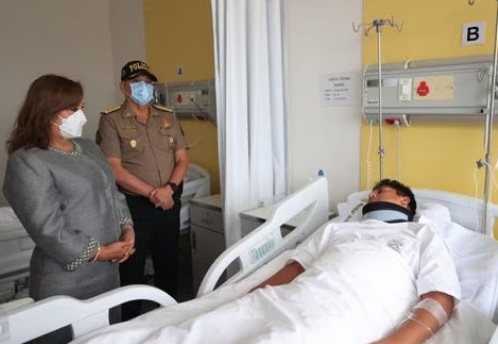 Este sábado la presidenta Dina Boluarte y el comandante general de la Policía, Jorge Angulo Tejada, llegaron al hospital de la PNP para visitar a los 4 oficiales que resultaron heridos durante el enfrentamiento con el ‘Maldito Cris’.