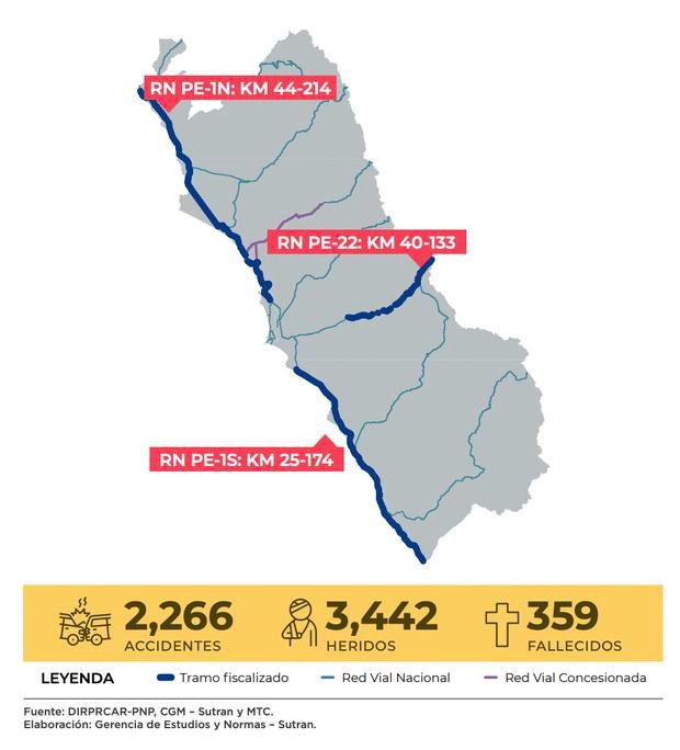 Lo preocupante es que solo en la región Lima, de enero a junio del 2021, ocurrieron 2,266 accidentes en carreteras que provocaron la muerte de 359 personas y dejaron a 3,442 heridos. Además, el año pasado la Sutrán reportó 4,010 accidentes de este tipo en el país con 681 muertos y 5,296 heridos.