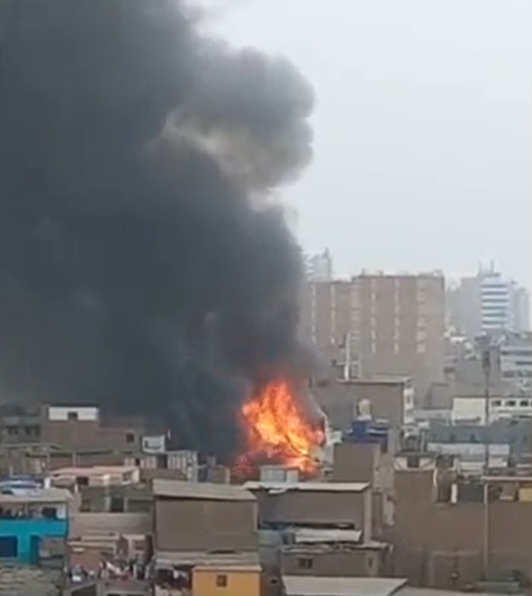 Cerca de 15 unidades de bomberos atendieron la emergencia de incendio reportada en la cuadra 1 de Prolongación Huánuco, en La Victoria.