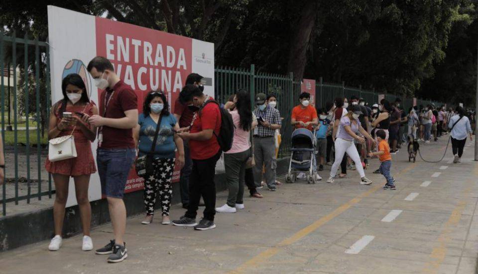 Este sábado se reportó largas filas de personas en los exteriores de los vacunatorios del Campo de Marte (Jesús María) y Parque de la Exposición (Cercado de Lima). Algunos ciudadanos estaban desde muy temprano esperando ser inmunizados contra la covid-19, mientras que otros buscaban realizarse la prueba de descarte gratuito.