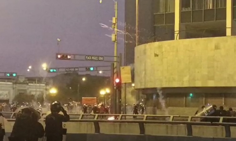 En el Centro de Lima se vienen registrando en estos momentos enfrentamientos entre los efectivos policiales y los manifestante a la altura de la Plaza Grau. Según se pudo constatar, los manifestantes están quemando objetos para arrojarlos a los agentes, mientras que los efectivos del orden lanzan bombas lacrimógenas para tratar de dispersarlos.