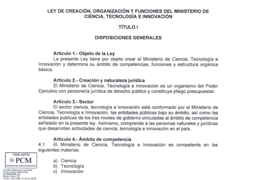 Como se recuerda, a fines de agosto de 2021, el presidente Pedro Castillo inició reuniones de coordinación con un grupo de científicos, a fin de abordar el proyecto de ley que crea el Ministerio de Ciencia, Tecnología e Innovación Tecnológica.