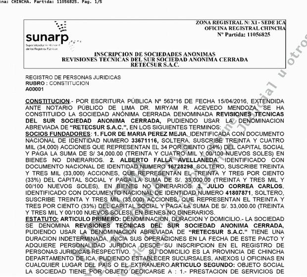 Según informa el documento, esta empresa fue fundada en el 2018 por Alberto Falla Avellaneda, quien el pasado 2 de agosto, fue designado como Director Ejecutivo del Programa Nacional de Transporte Urbano Sostenible (ProMovilidad), una entidad adscrita al MTC.