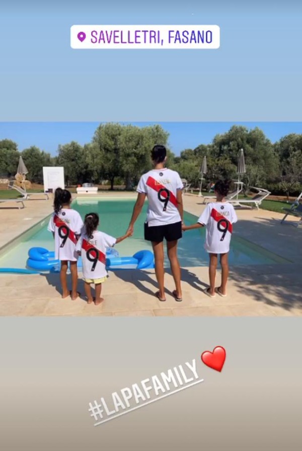 Sin embargo, vía Instagram, el delantero ítalo-peruano compartió algunas imágenes de su familia que se enamoraron del país. En la instantánea se puede observar a la esposa del delantero de 31 años, Alessia Lapadula, vistiendo la camiseta de la selección peruana. Pero no está sola, pues sus tres hijas lo acompañan con la misma camiseta nacional.
