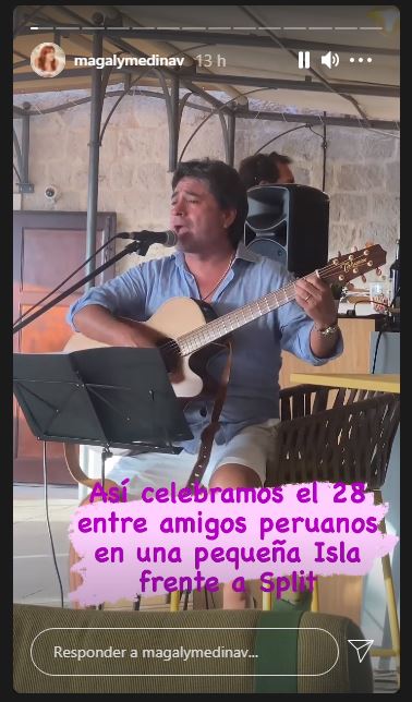 Recientemente, la ‘Urraca’ compartió algunos videos en Instagram, donde se pudo evidenciar que su esposo realizó un miniconcierto en una isla de Croacia por el Día de la independencia del Perú.