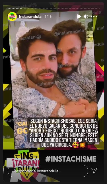 “Según instachismosas, este sería el nuevo galán del conductor de ’Amor y Fuego’, Rodrigo González. Si bien aún no sé el nombre, este habría subido esta tierna imagen que ya circula”, se lee en la descripción de la foto.
