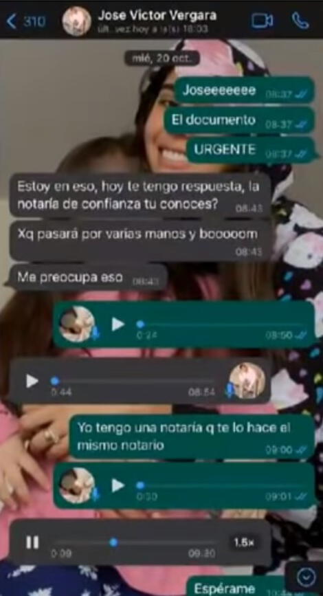 La letrada apareció y con permiso, reveló que Melissa Paredes ya estaba tramitando los papeles de divorcio y que esas conversaciones las tenía con su representante, a quien le pedía con mucha ansiedad que se acelera en los trámites.