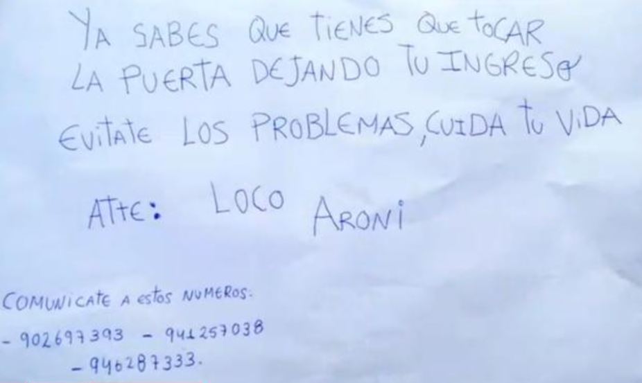 El empresario Jonathan Maicelo se negó a pagar un cupo por su restaurante con sede en la avenida Gran Chimú, distrito de San Juan de Lurigancho, luego de que unos delincuentes extorsionadores le dejaran un paquete que contenía una granada, varias balas y un mensaje amenazante contra su vida.