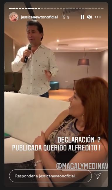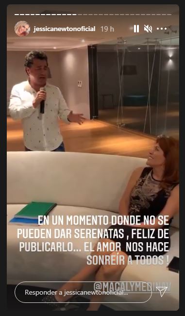 Jessica Newton compartió en sus historias de Instagram un romántico video donde se observa a Alfredo Zambrano cantando para su aún esposa Magaly Medina.