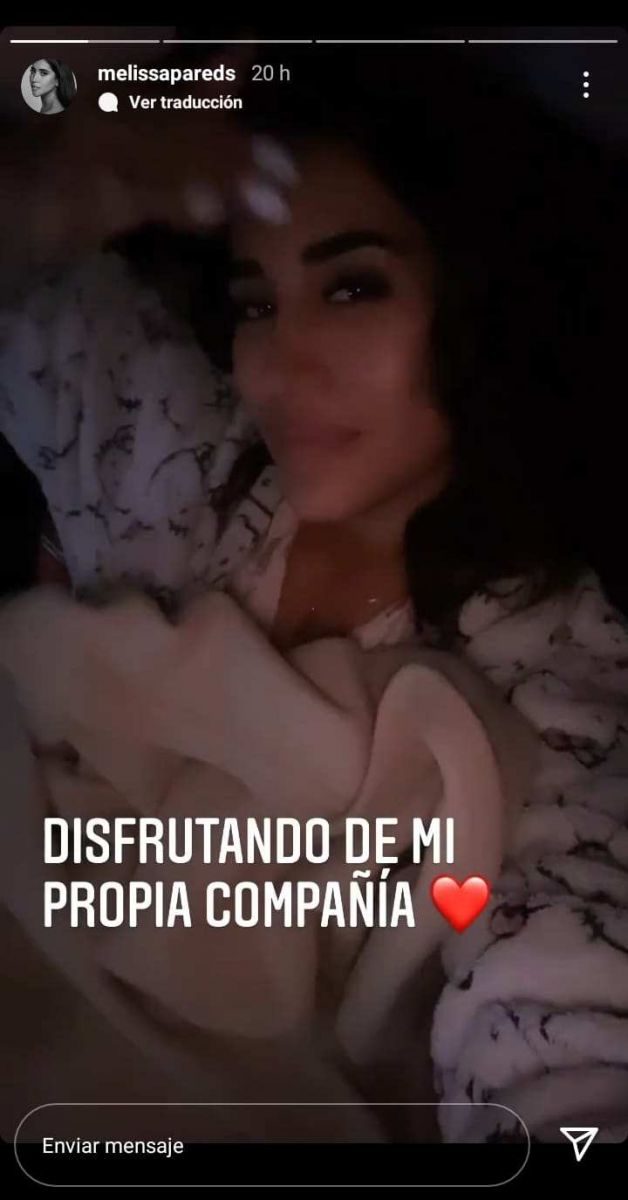 “Disfrutando de mi propia compañía”, indicó Melissa Paredes en el video que compartió en sus redes sociales. Además, acompañó el clip con un corazón.