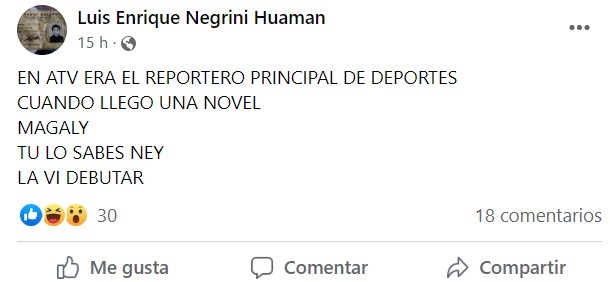 “En ATV era el reportero principal de deportes cuando llegó una novel Magaly. Tú lo sabes, Ney (Guerrero)”, escribió Negrini.