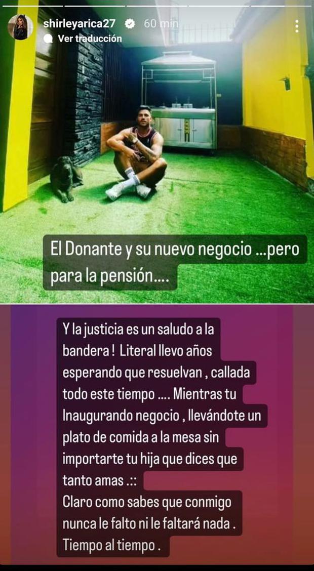 “El donante y su nuevo negocio, pero para la pensión. Y la justicia es un saludo a la bandera. Literal, llevo años esperado que resuelvan”, dijo Shirley Arica en sus estados.