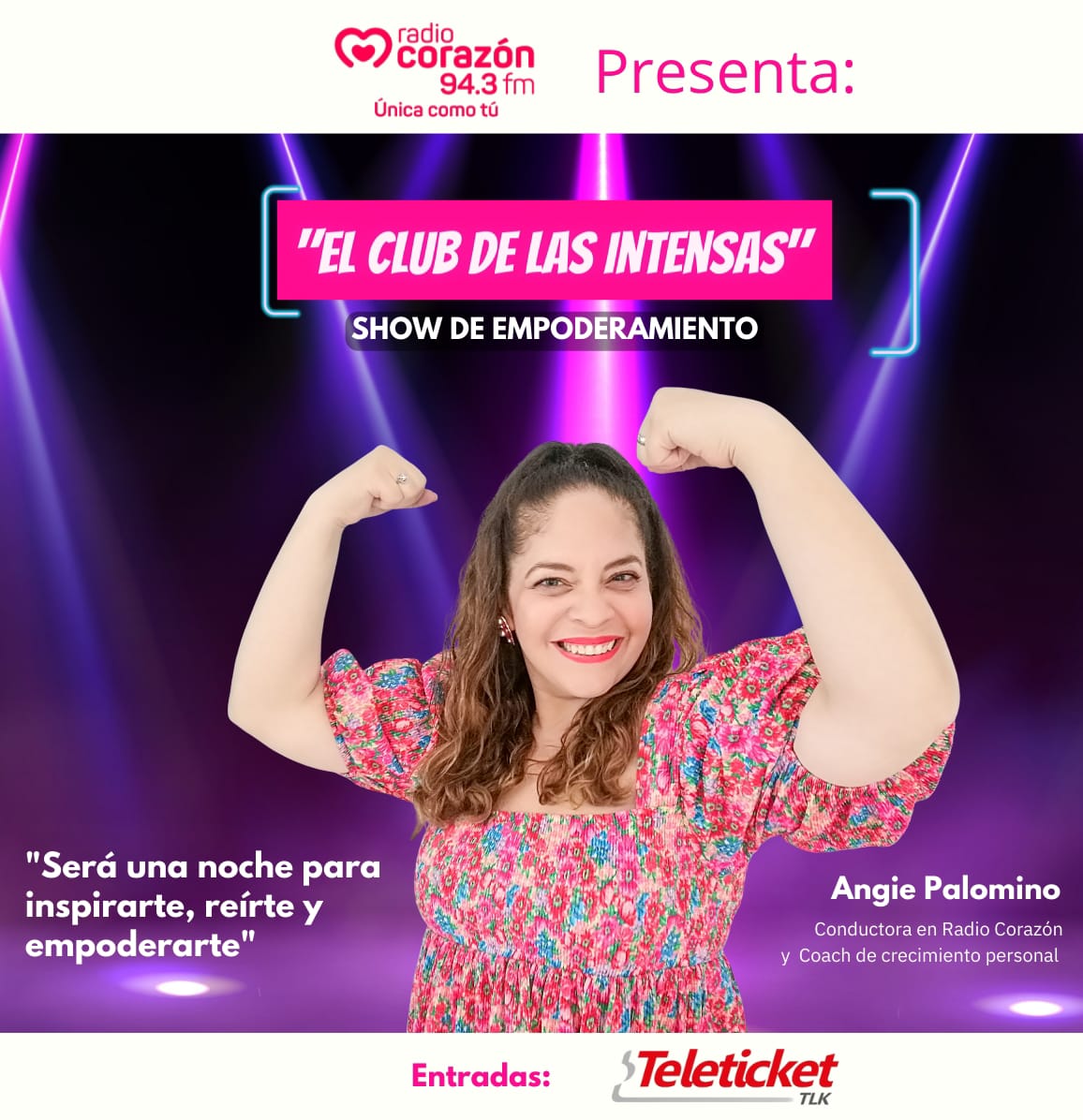 La conductora de Radio Corazón y coach, Angie Palomino presenta “El Club de las Intensas”, un show de empoderamiento a la vena, en el que compartirá tres secretos para que las mujeres aprendan a amarse y construyan la vida con la que sueñan, mezclando el coach y el stand up comedy.