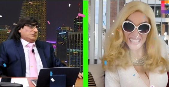 “Este sábado no saben a quién tengo de invitada, a la espectacular, toda una diva, Susana Gimenez”, dice Álvarez encarnando a Jaime Baylys. “Este sábado voy a estar en La Vacuna del Humor, no te lo pierdas”, agrega Fátima Florez en su personaje de Susana Gimenez.