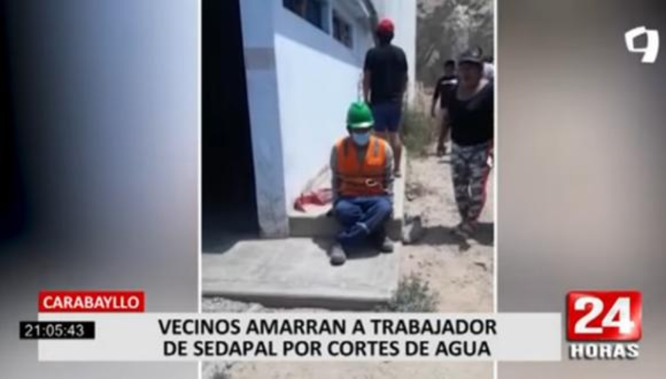 ¡De locos! Un grupo de vecinos del asentamiento humano 11 de mayo en el distrito de Carabayllo amarró a un trabajador de SEDAPAL. Esta decisión la adoptaron tras no tener el servicio de agua potable por cuatro días, incluyendo Navidad.