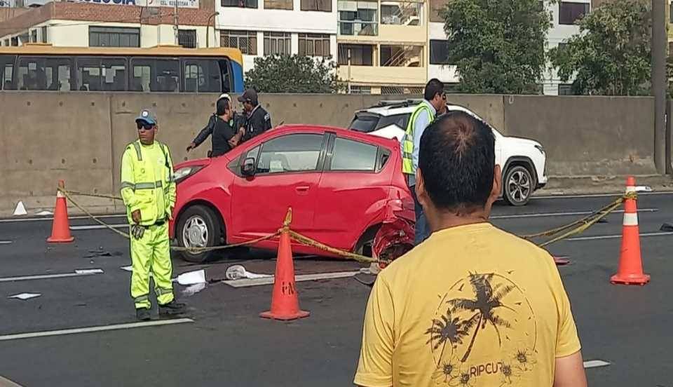 Esta mañana un auto rojo chocó contra un camión de basura en la Panamericana Norte a la altura del distrito de Los Olivos. Producto del impacto, el vehiculo menor dio 5 vueltas de campana, y el copiloto murió en el acto.
