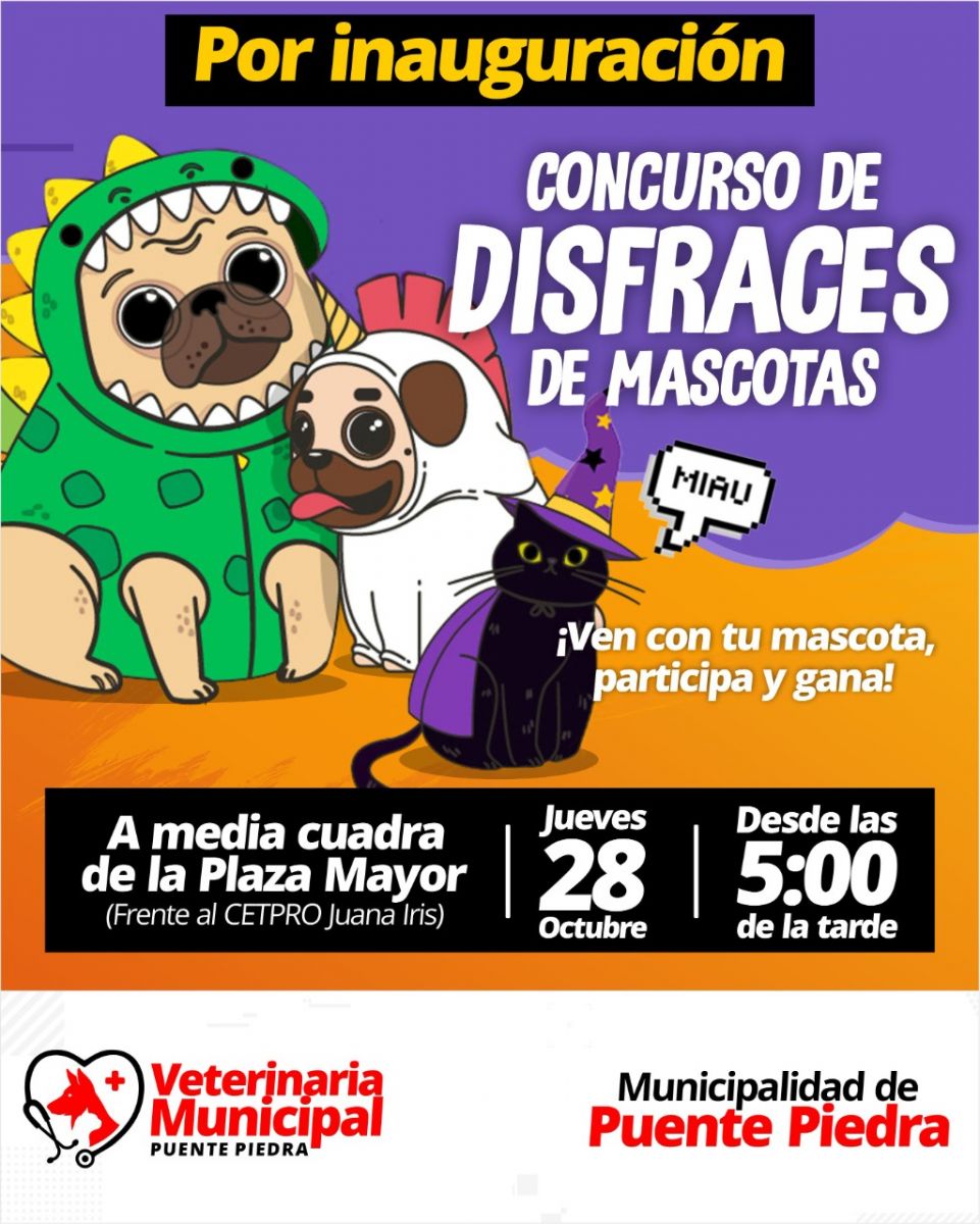 La municipalidad de Puente Piedra inugurará la primera Veterinaria Municipal del distrito con un divertido concurso de disfraces de mascotas este jueves 28 de octubre desde la 5 p.m.