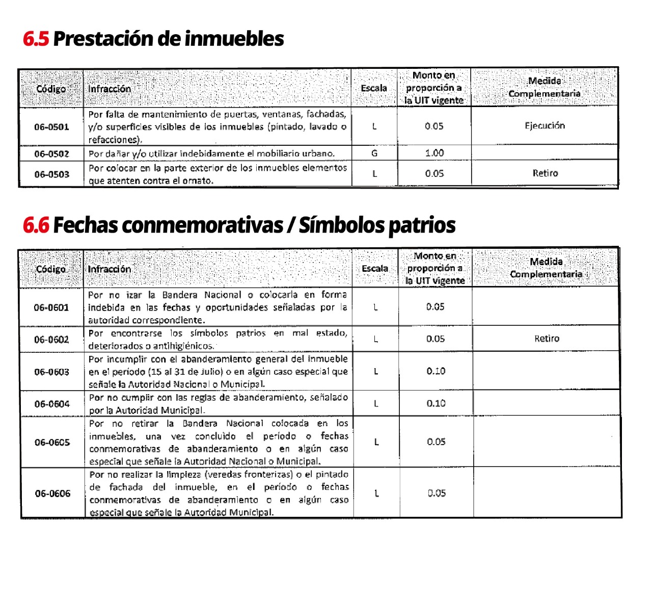 Cabe mencionar que, con esta campaña, el área de Ordenamiento Urbano del distrito, estará atenta a cualquier incumplimiento a esta norma que será sancionado económicamente con multas que van desde la mitad de una UIT hasta 2 Unidades Impositivas Tributarias. Cada UIT tiene el valor de 4.600 soles.