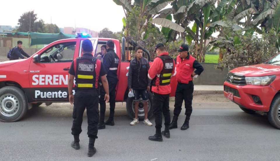 Agentes de serenazgo de Puente Piedra se percataron del hecho y detuvieron al mototaxi. “Logro visualizar el forcejo entre dos féminas. Uso el método disuasivo, que es la sirena. Al escuchar y ver la unidad dejan a la agraviada. En la Av. Las Palmeras se logra interceptar a dicha moto, pero solamente se encontró al conductor”, indicó el sereno Álex Paucar.