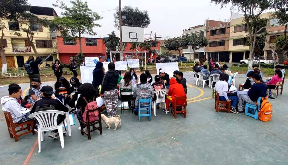 Un hechon indignante viene aquejando a las madres de familia de la Institución Educativa Pedro Abraham Valdelomar Pinto, ubicado en la Urbanización Los Chasquis, en San Martín de Porrres, pues denuncian a los vecinos de la zona de apropiarse del terreno que era para la construcción de un colegio para estudiantes, quienes están recibiendo clases en medio de una losa deportiva.