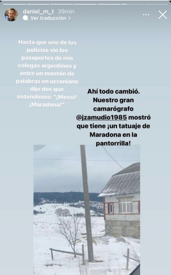 Son muchísimas las historias de argentinos en el exterior a los que la magia del apellido "Maradona" los ayudó en momentos difíciles: salir de barrios complicados, cruzar pasos fronterizos o simplemente cambiar miradas desconfiadas de los lugareños frente a los forasteros. Y en medio de la invasión de Rusia a Ucrania, mientras cubre la guerra para diferentes medios chilenos, el periodista Daniel Matamala pudo comprobarlo en carne propia, gracias a un tatuaje del astro futbolístico que el camarógrafo argentino Juan Sebastián Zamudio tiene en uno de sus gemelos.