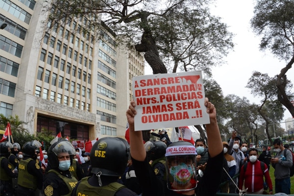 Un grupo de ciudadanos, liderados por el excongresista aprista Jorge del Castillo, salieron a hacer uso de derecho a la protesta.